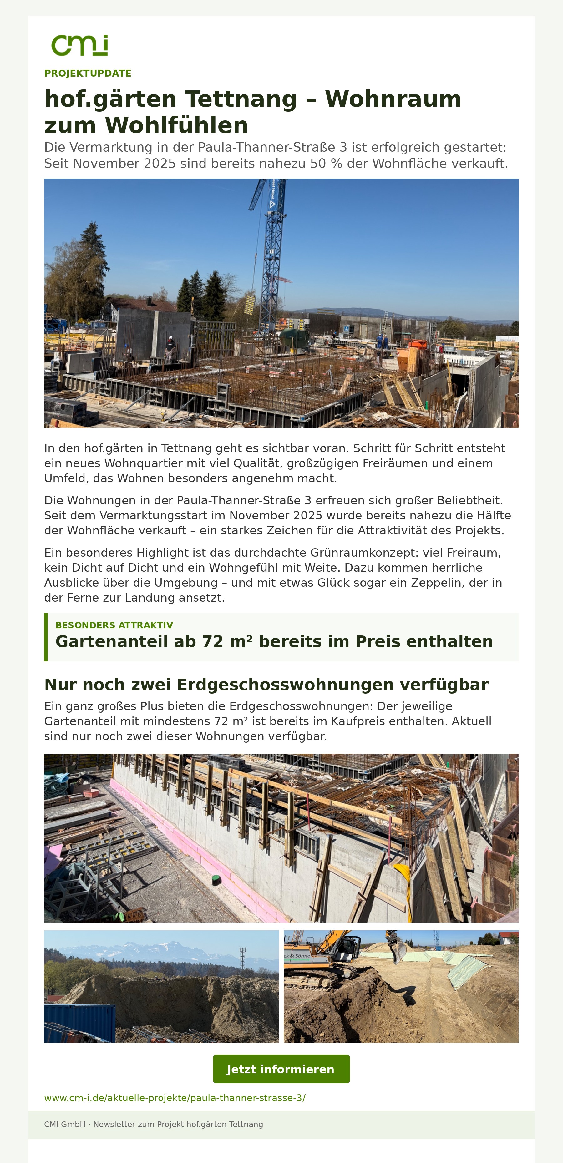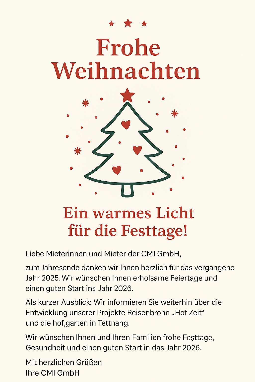 Wir bei CMI stehen für nachhaltige Immobilienentwicklung – von der ersten Planung bis zur Vermietung. Dabei setzen wir auf Transparenz, Verlässlichkeit und persönliche Nähe.