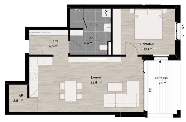 Terrasse: 7,6m²