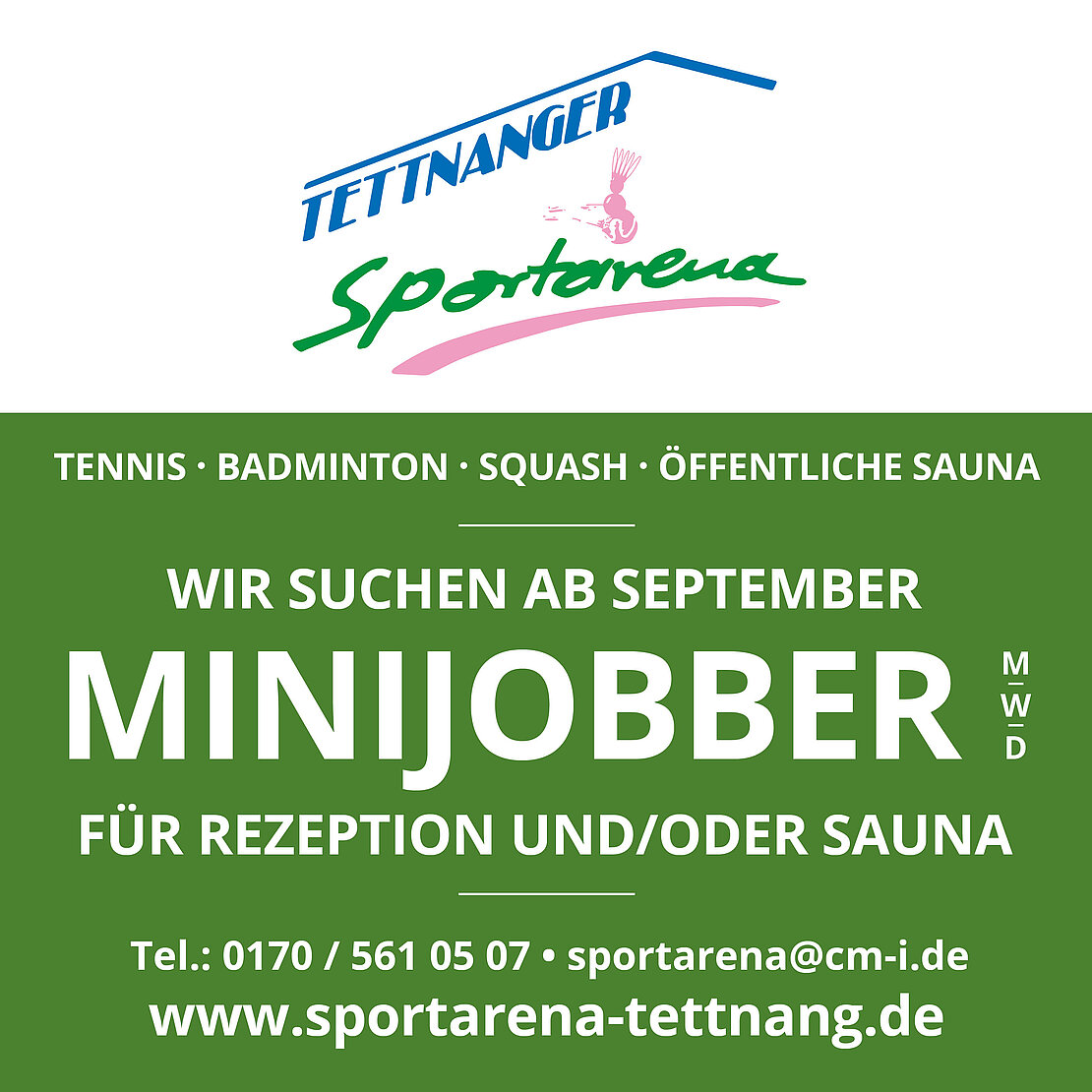 Sie sind freundlich, teamorientiert und packen gerne an? Wir freuen uns über eine Bewerbung per E-Mail an info(at)cm-i.de. Bei Minijobbern reicht uns eine kurze Vorstellung Ihrer Person mit Angabe Ihrer bisherigen Tätigkeit/Hauptbeschäftigung und Ihren möglichen Arbeitszeiten.