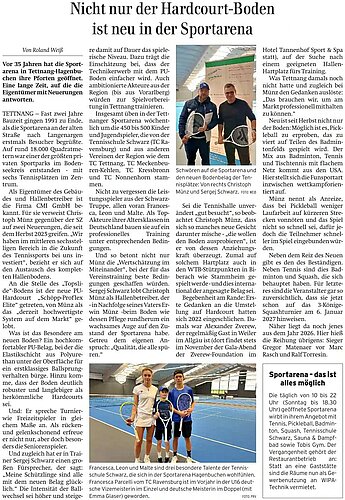 Fast zwei Jahre Bauzeit gingen 1991 zu Ende, als die Sportarena an der alten Straße nach Langenargen erstmals Besucher begrüßte. Auf rund 18.000 Quadratmetern war einer der größten privaten Sportparks im Bodenseekreis entstanden - mit sechs Tennisplätzen im Zentrum.
